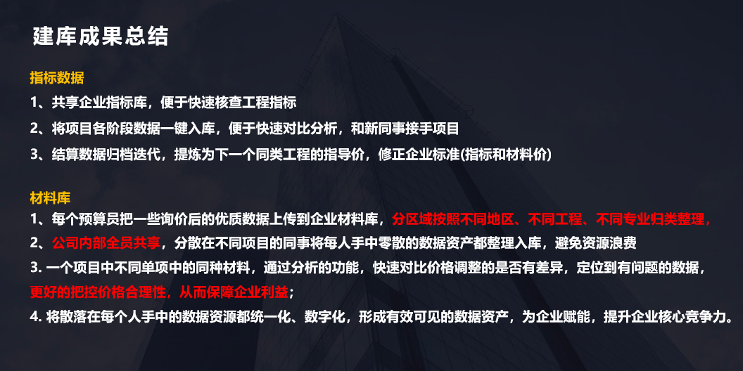 3、提升项目指标计算和对比审核的工作效率,项目指标信息入库形成企业数据资产。