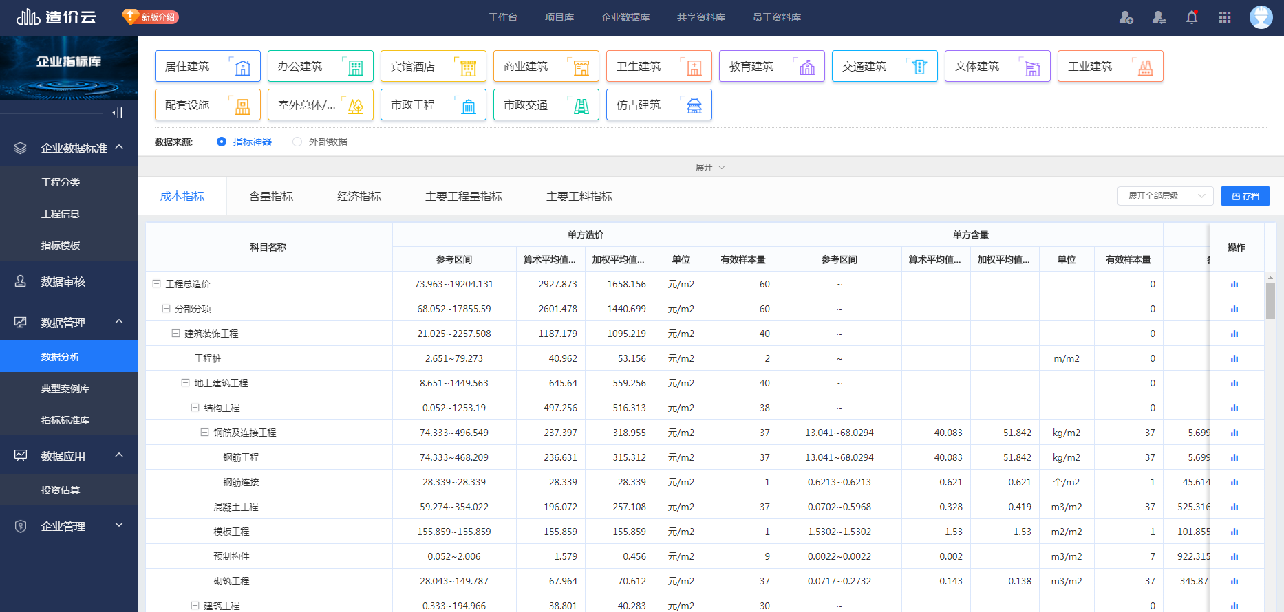 b、涉及到的工程类型比较多,在材料的分析上面使用数据库可以快速进行分类存储,复用