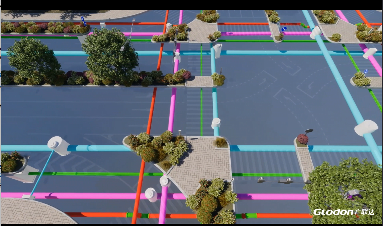管立得与上下游专业数据完全互通,高效协作。 与路易软件、综合管廊软件、海绵城市软件、总图软件等生成的模型数据进行多专业合模,实现复杂项目成果的综合展示。