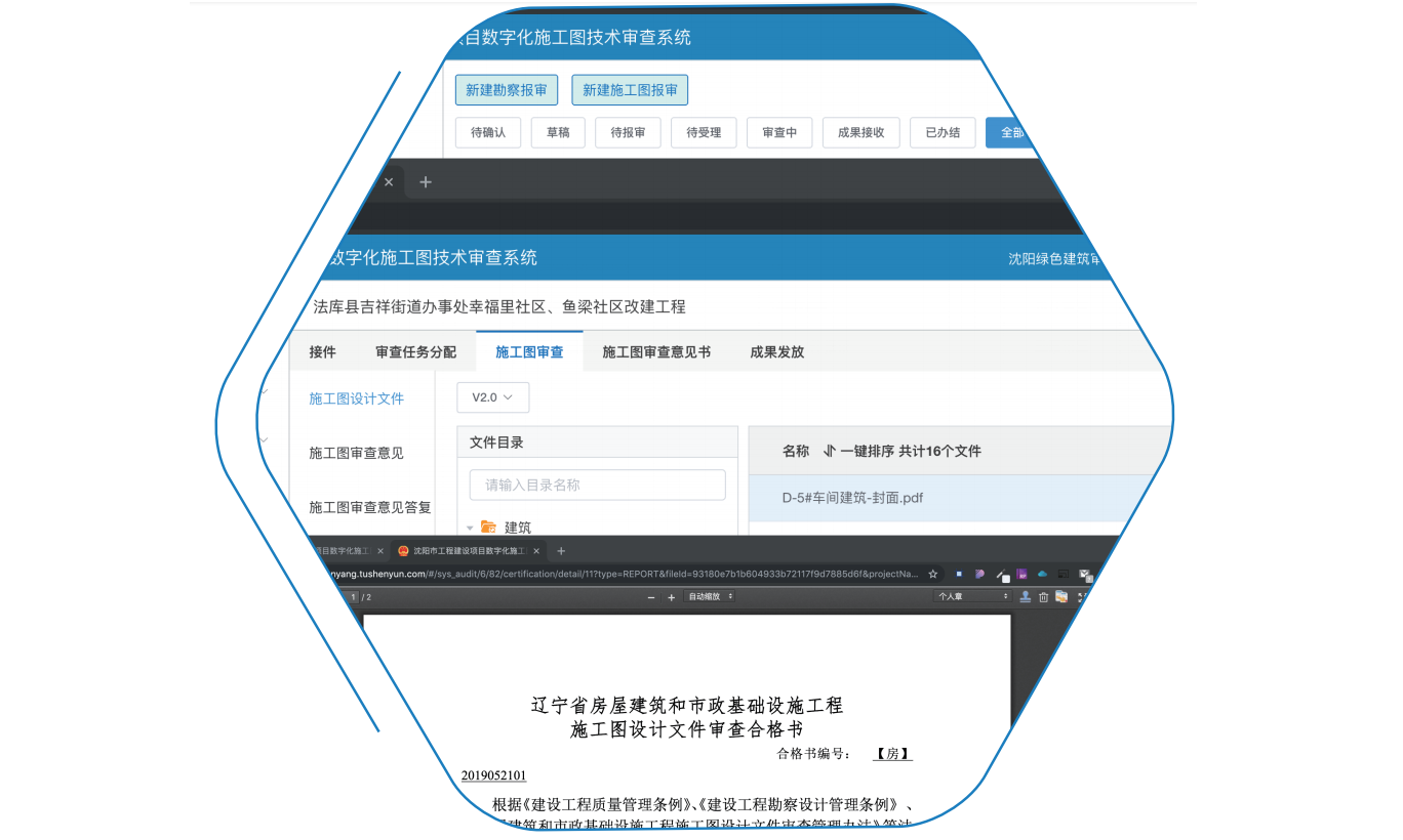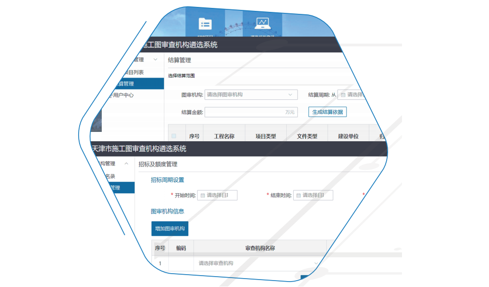 提供统一、规范、完整的施工图技术审查及工作管理平台,构建了先申报后选择、 机选摇号、同体回避、工作量管控、申诉评价等全面的机构遴选管控模块,为政府买服务方式开展施工图审查工作提供了规范、便捷、有效的系统支撑。能够与报建平台无缝对接,实现行政审批与技术审查的全过程打通;提升审批和监管的及时性、有效性、准确性,为进一步压缩工程建设项目审批总时限提供有效技术支撑。