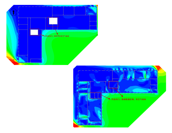 建筑风环境模拟分析:室内自然通风模拟对建筑室内风环境进行模拟分析,优化建筑内部空间布局,获得舒适的建筑室内风环境和合理的气流组织形式,从而提高居住环境质量和改善生活品质。可输出模拟工况(夏季、冬季、过渡季等)建筑室内风速、温度、湿度、风速方向、空气龄、风压等。 |