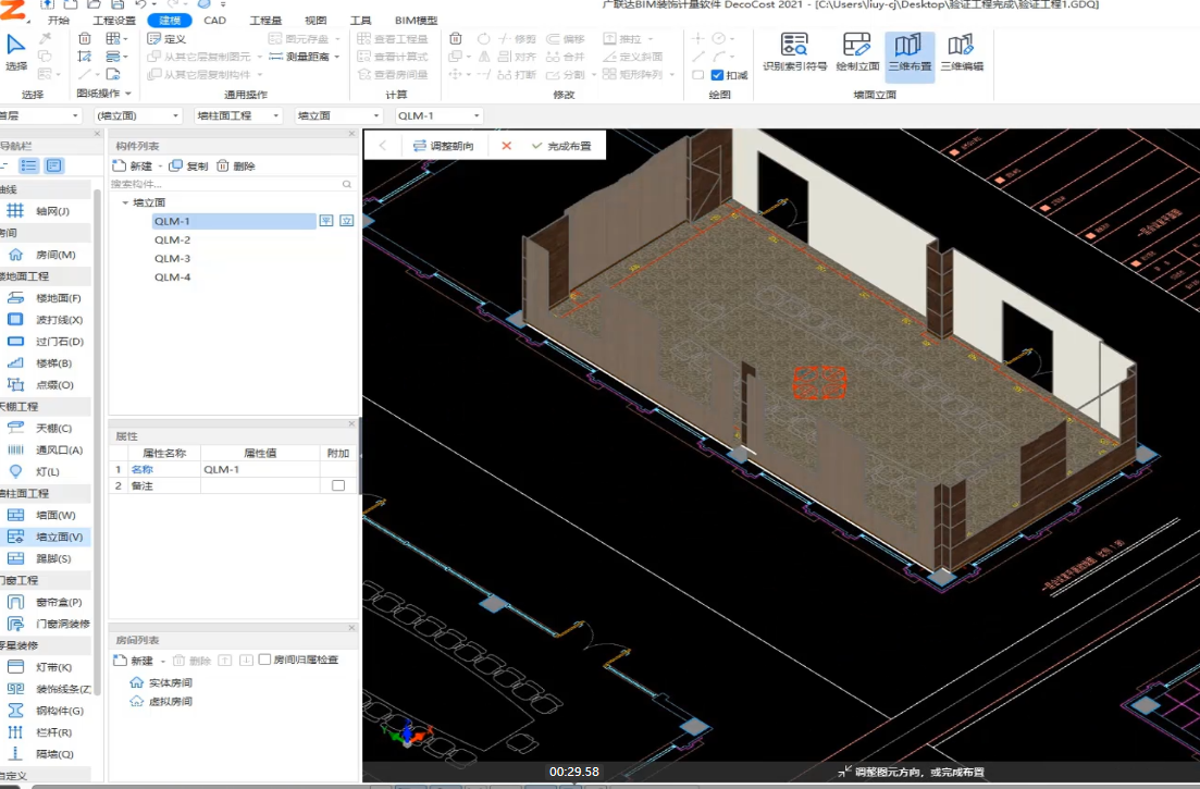 根据节点图,识别天棚节点、墙面节点、龙骨、灯带和装饰线条,根据材质和布置边线,生成指定的截面形状的造型。实现根据节点图快速可视化建模,精准计算造型工程量,并支持造型二次编辑以及数据持续复用。