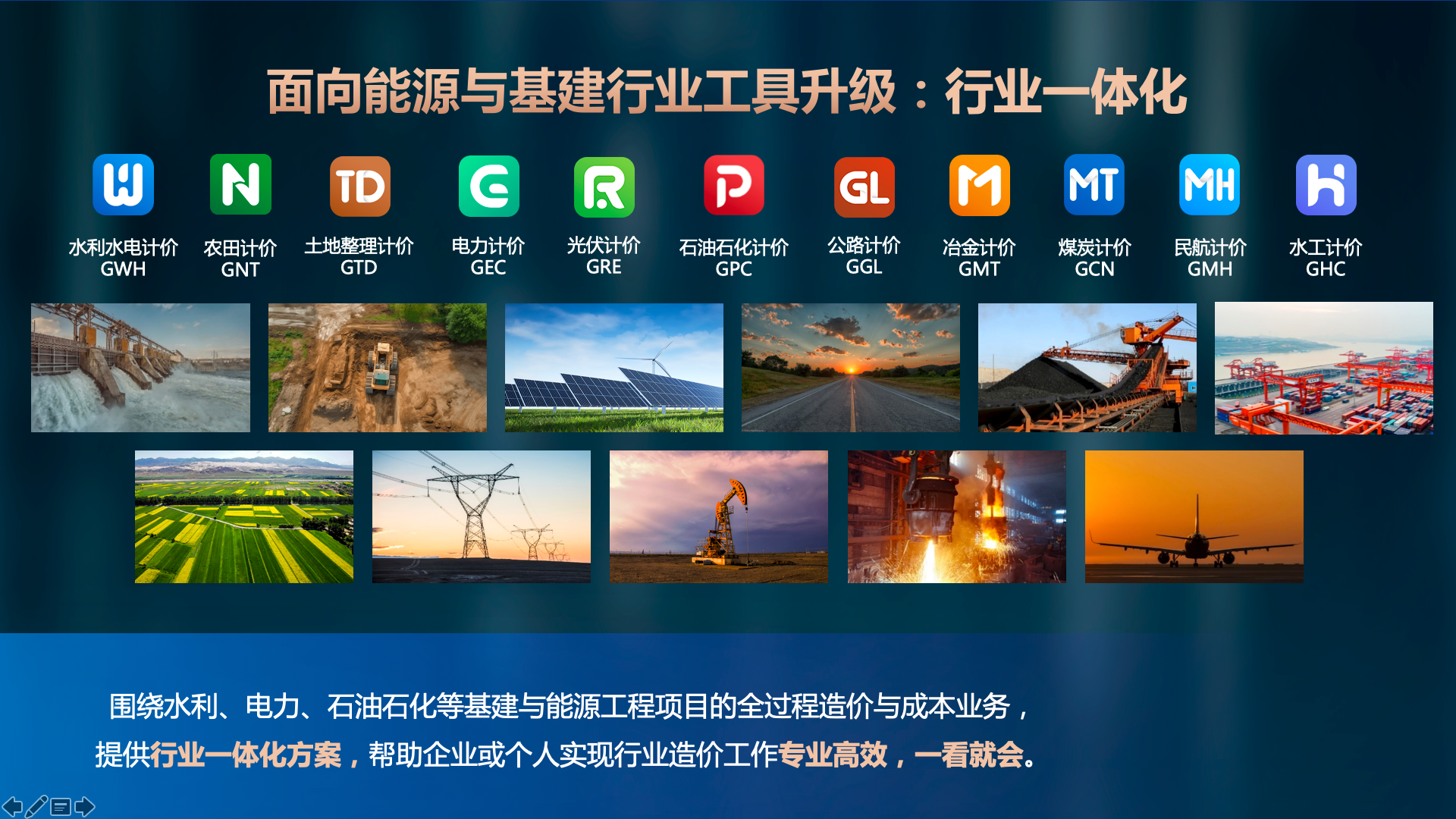 提供行业一体化方案,帮助企业或个人实现行业造价工作专业高效,一看就会。