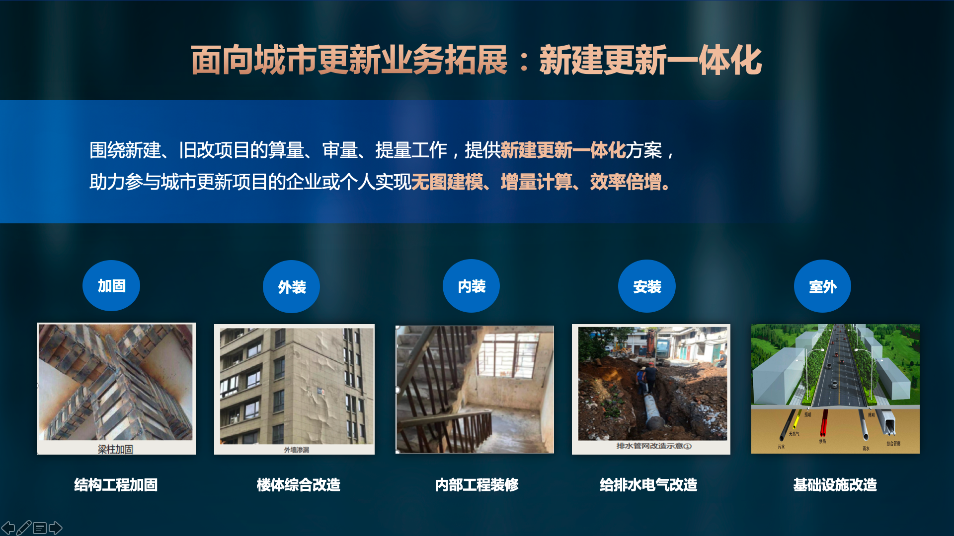围绕新建、旧改项目的算量、审量、提量工作,提供新建更新一体化方案,